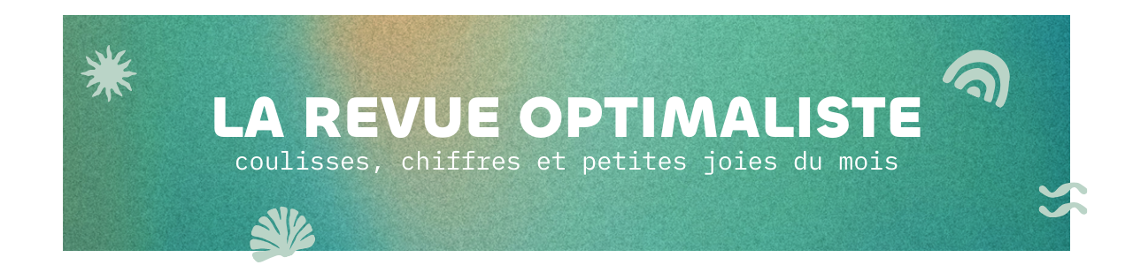 Dans "la revue optimaliste", je tâĂ©cris Ă chaque dĂ©but de mois pour te partager mon bilan : ce qui a fonctionnĂ©, ce qui m'a ralenti, les doutes, les petits pas et les grands dĂ©clics.